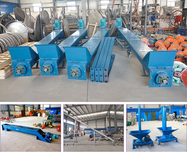 螺旋元件:通常由螺旋葉片組成(輸送機構就像螺旋),簡單的螺旋是分段輸送機。它是由一根長絲帶扭成螺旋狀纏繞而成。這些標準螺紋焊接到中心軸上。或者,輸送元件在吊架的幫助下沿槽的長度懸掛。